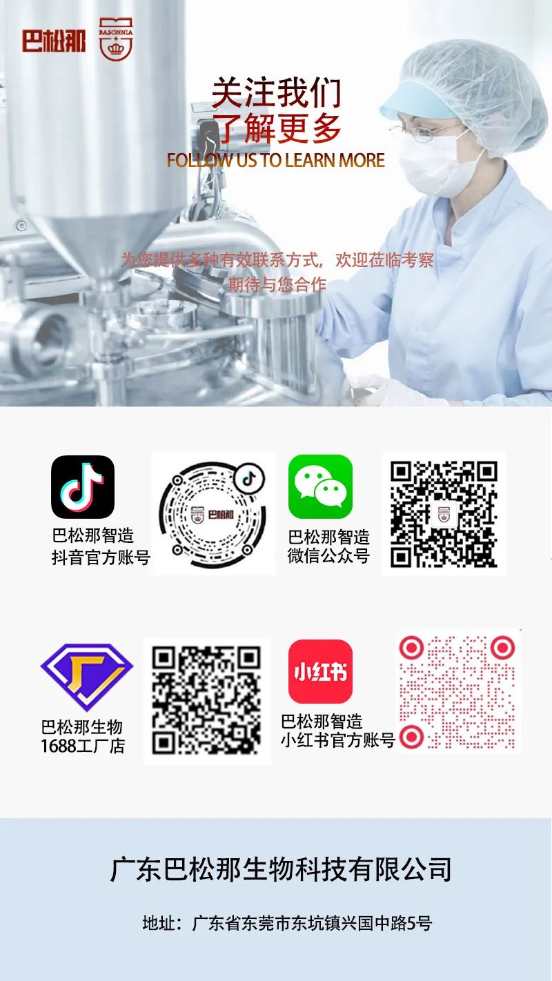 广东巴松那生物科技有限公司于2015年正式注册成立,主打高端、专业、抗衰,拥有妆消特械一站式OEM/ODM全供应链平台;拥有国家级CNAS实验室与国际科研平台,自主研发细胞全营养配方,10000+配方数据库,2000多个高端抗衰成熟配方,GMP制药级生产基地,自有高端院线品牌,渠道覆盖全国2000多家高端美容院及大型连锁,累积10万高净值人群专业抗衰管理服务体系。多年来持续进行研究开发与技术成果转化,形成企业核心自主知识产权成功获得国家“高新企业”认证。